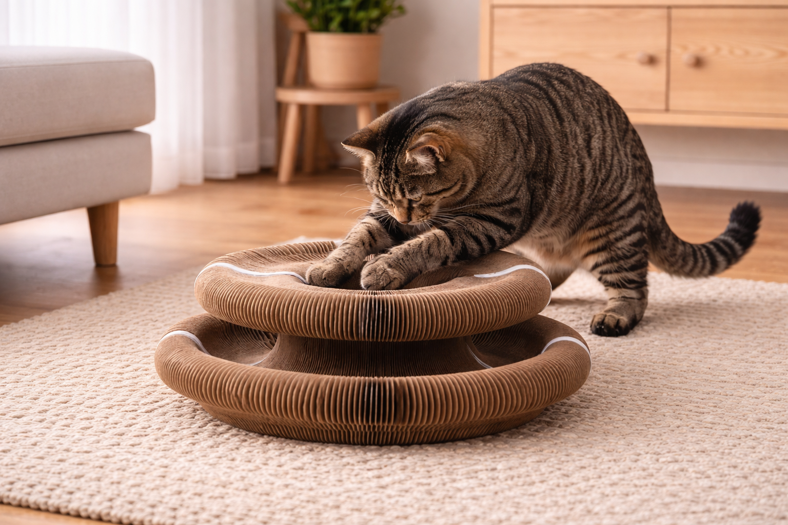 Nos tapis sont fabriqués à partir de fibres résistantes au toucher naturel, idéales pour les griffes des chats. Leur texture tissée est à la fois durable, agréable pour le chat et esthétique pour votre intérieur.