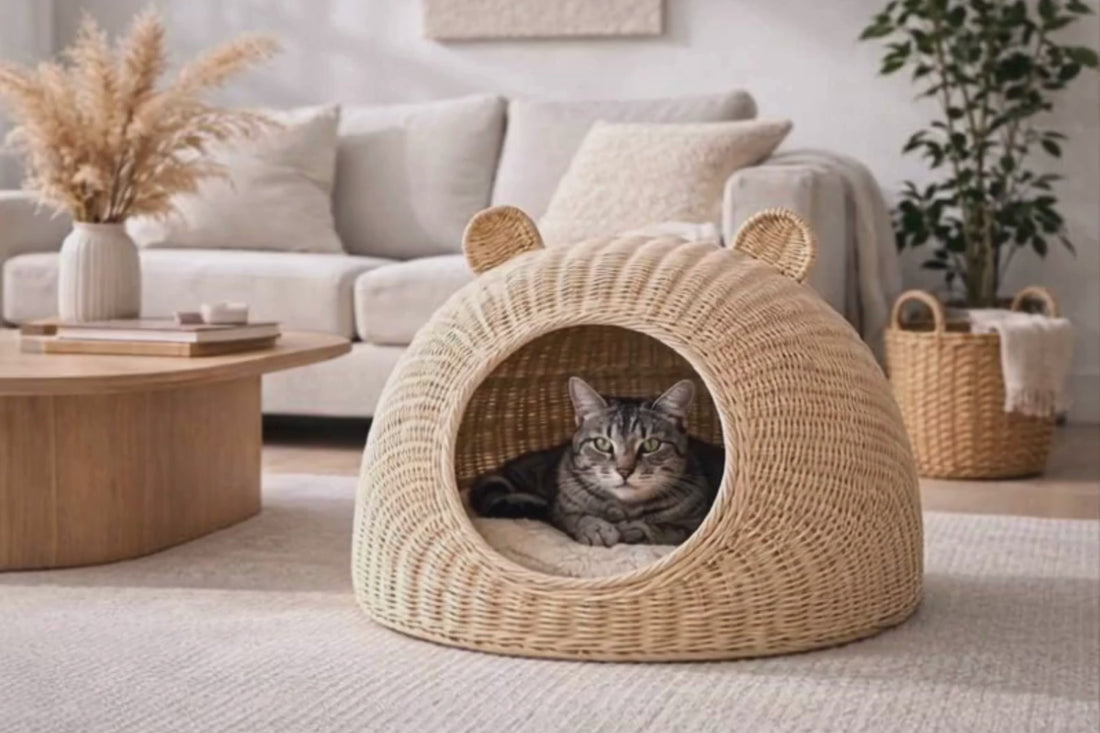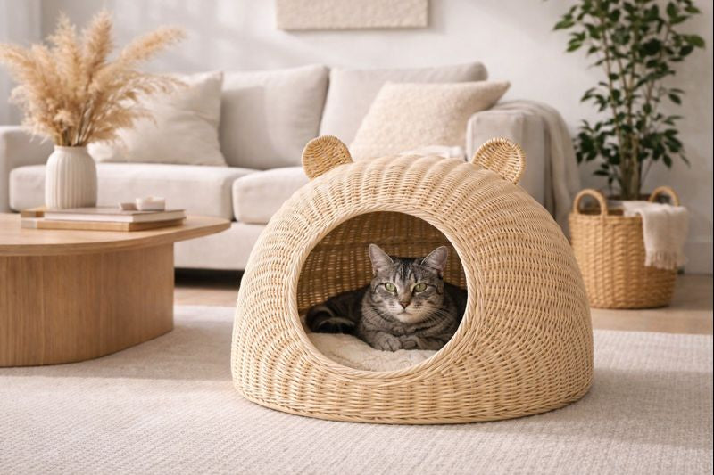 Fabriquée en rotin tressé, cette niche allie robustesse et légèreté pour un usage quotidien.