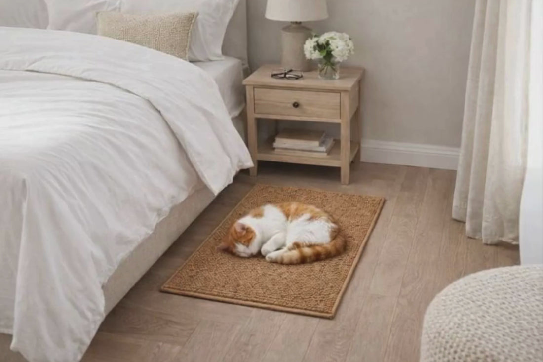 Nos tapis sont fabriqués à partir de fibres résistantes au toucher naturel, idéales pour les griffes des chats. Leur texture tissée est à la fois durable, agréable pour le chat et esthétique pour votre intérieur.